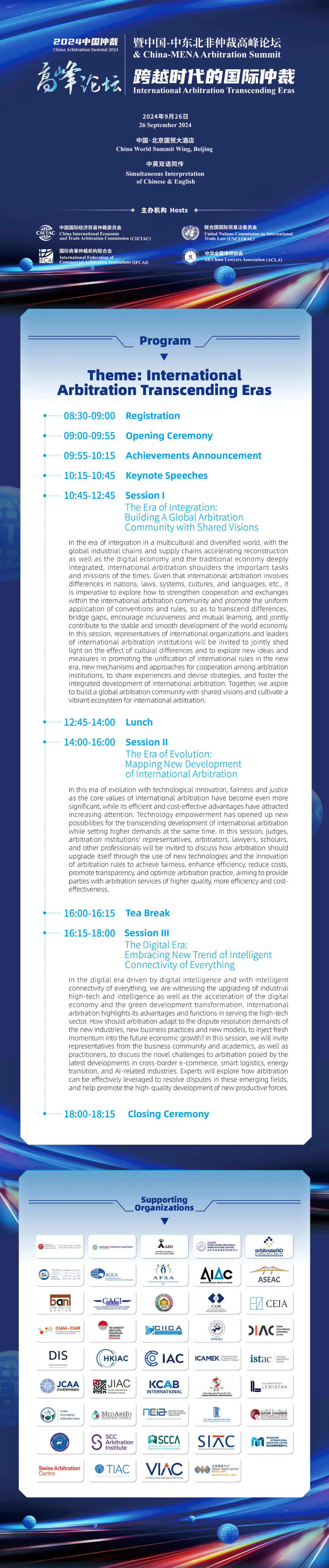 The China Arbitration Summit 2024 & China-MENA Arbitration Summit will be held on 26 September 2024 at China World Summit Wing, Beijing. The Summit is co-hosted by China International Economic and Trade Arbitration Commission (CIETAC), United Nations Commission on International Trade Law (UNCITRAL), International Federation of Commercial Arbitration Institutions (IFCAI), and All China Lawyers Association (ACLA). BET体育365投注官网.